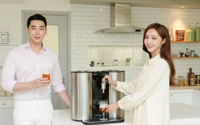 LG전자가 10일 100만원대 캡슐형 수제맥주제조기 'LG 홈브루' 신제품을 출시했다. LG전자는 기존 모델 대비 내부 디자인을 단순화하는 등 원가절감을 통해 가격을 낮췄다. 하지만 외관 디자인과 차별화된 성능과 기능은 동일하게 적용해 기존 제품의 고급스런 느낌과 맛있