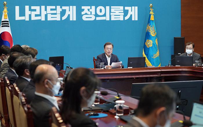 문재인 대통령은 6일 3차 추가경정예산과 관련, “지자체와 적극 협력해 속도감 있게 집행해 달라”고 말했다. 문 대통령은 이날 청와대에서 주재한 수석·보좌관회의 모두발언에서 “이제 국회가 통과한 추경안을 신속하게 집행하는 일이 중요하다”며 이같이 밝혔다. 문 대통령