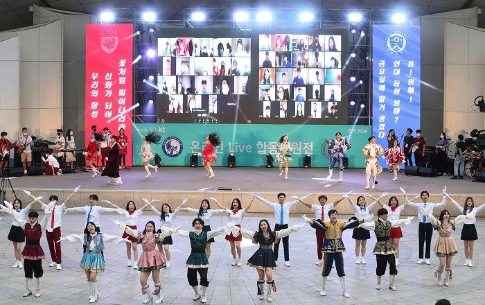 KT가 코로나19로 취소된 캠퍼스 축제를 기다리는 대학생의 마음을 담아 지난 12일 저녁 ‘온라인 라이브 대학 축제’를 진행했다고 14일 밝혔다. 코로나19 장기화로 인해 ‘언택트’가 일상화되면서 사회∙문화적 교류의 단절로 심리적 고통과 부담감이 확대되고 있다. 특히