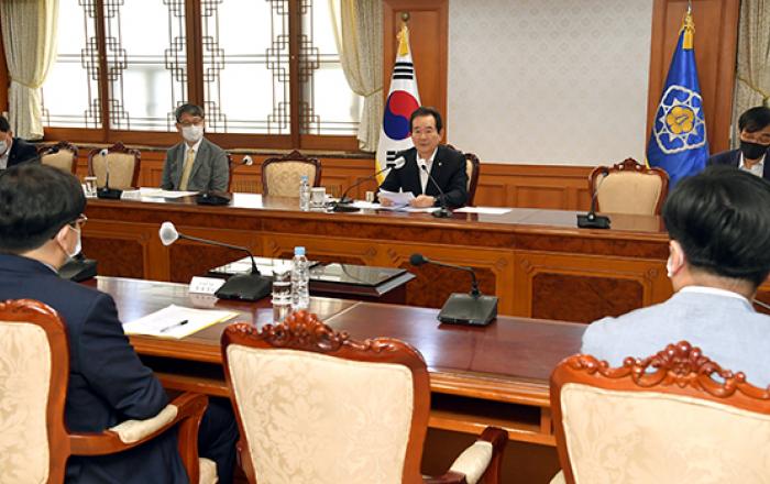 정세균 국무총리는 12일 코로나19 사태와 관련, “수도권 중심의 산발적 집단감염과