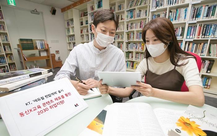 KT는 취업 준비생들을 위해 에듀윌의 온라인 교육 콘텐츠를 데이터 걱정 없이 수강할 수 있는 ‘에듀윌 찐합격팩’ 부가서비스와 전용패드를 출시했다고 21일 밝혔다. 에듀윌 찐합격팩 부가서비스는 월 4만1500원(VAT포함)이다. KT 홈페이지와 에듀윌 가입 사이트(ht