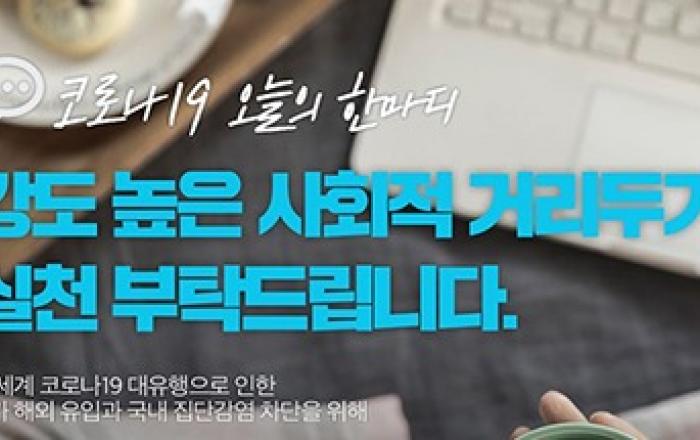 중앙방역대책본부는 전 세계적인 코로나19 대유행 상황에서 국내에서도 종교시설과 사업장 등에서 집단감염이 지속되고 있어 4월 5일까지 ‘15일간의 강화된 사회적 거리두기’ 실천을 당부했다.정은경 중앙방역대책본부장(질병관리본부장)은 “국민 여러분들께서는 최대한 집 안에서