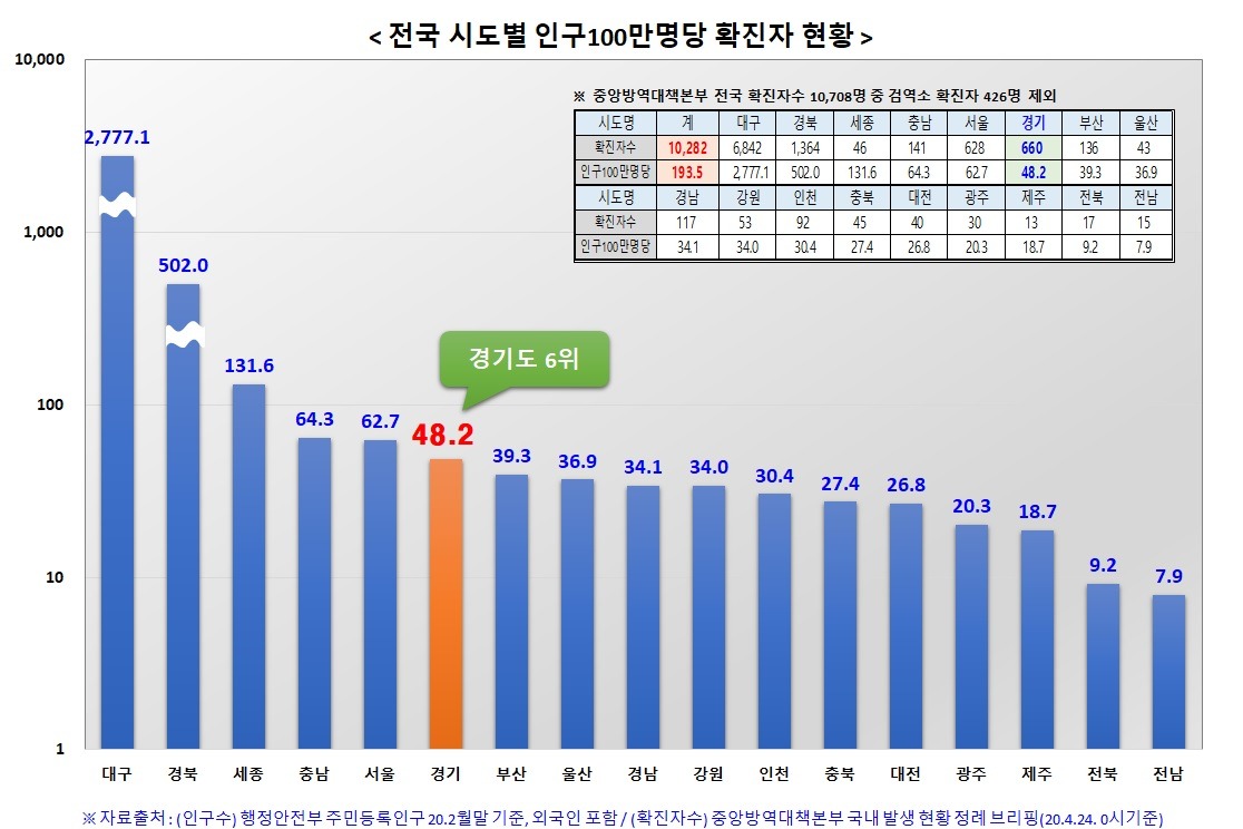 한편 23일 0시 기준 경기도 확진자수는 660명으로 전일 0시 대비 1명 증가했다.(전국 1만708명) 인구100만 명 당 확진자 발생 수는 48.2명으로 전국 17개 시도 중 6번째다. 경기도 확진자 중 443명은 퇴원했고, 현재 203명이 병원 및 생활치료센터에서 격리 중이다. 4월 1일 이후 도내 발생한 확진자 159명 중 35.2%에 해당하는 56명이 해외입국자다.