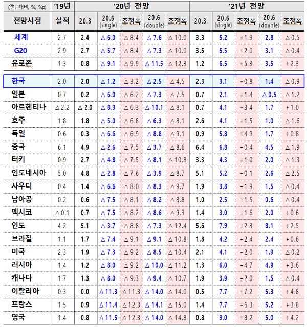 마이너스 성장률이지만 주요 20개국(G20)과 OECD 국가 중 성장률 조정 폭과 절대 수준에서 모두 가장 양호한 수준을 보였다.