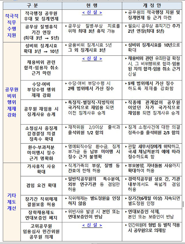 또 성비위 징계시효를 현행 3년에서 10년으로 연장하고, 공무원이 수당이나 여비를 부당수령하면 최대 5배로 추가 징수해 강하게 제재할 방침이다.