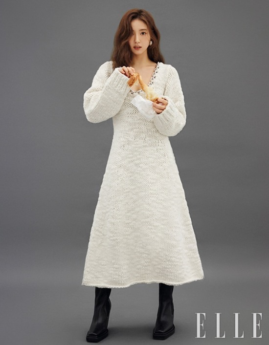 공개된 화보 속에서 신세경은 체크 패턴의 수트와 크림색의 청키한 니트 드레스에 블랙 부츠, 새틴 소재의 재킷과 시스루 톱 등 상반된 느낌의 의상을 모두 소화해내며 룩을 완성했다.