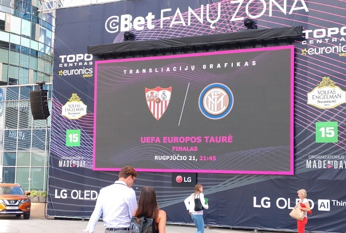 빌니우스시 주관으로 설치된 대형 스크린은 유럽에서 대형 스포츠 경기가 연이어 열리는 가운데, 코로나 19로 경기장을 직접 찾아 응원하지 못하는 축구팬들을 위해 마련됐다. 광장에 설치된 대형 스크린을 통해 최소한의 사회적 거리를 유지하면서도 보다 현장감 있는 경기 관람을 돕는 차원이다.
