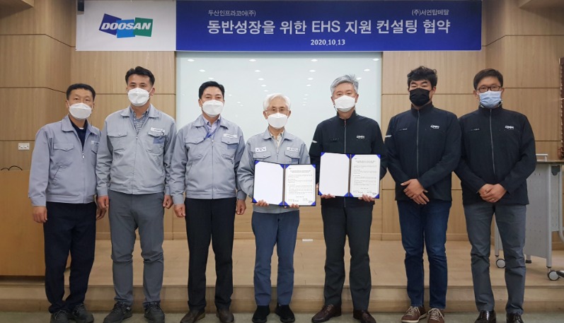 두산인프라코어는 13일, 주요 협력사인 ㈜서연탑메탈과 ‘동반성장을 위한 협력사 EHS지원 컨설팅 협약’을 체결했다.(사진) 두산인프라코어는 앞으로 27개 협력사와도 순차적으로 협약 체결 후 EHS지원 컨설팅을 진행할 예정이다.