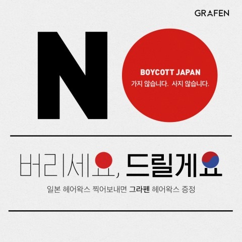 그라펜은 국내 헤어 시장의 경우 일본 제품의 점유율이 상당히 높은 편이라며 그라펜은 한국을 대표하는 남성 뷰티의 선두자로서 일본 불매 운동에 동참하고 한국 제품의 사용을 권유하고자 기업의 손실을 감수하고 제품을 무료로 증정하기로 했다고 밝혔다.
