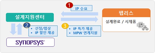 먼저 글로벌 반도체 IP 특가 지원을 위해 시높시스사에서 설계지원센터를 통해 국내 팹리스에 할인된 가격으로 반도체 IP를 제공하고, 설계지원센터는 원래 가격의 10%를 추가로 지원하는 프로그램을 마련했다.