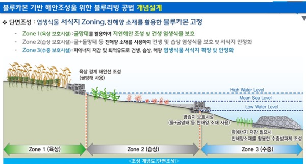 블루카본은 갯벌·염생식물·잘피·해조류·굴패각 등 해양생태계의 탄소흡수원으로 탄소 흡수뿐만 아니라 연안침식 방지 등 기후변화 대응 효과를 두루 갖추고 있다. 이번 숨쉬는 해안 시범 서식지 조성은 지난 5월에 발표한 블루카본 추진전략의 일환이다.