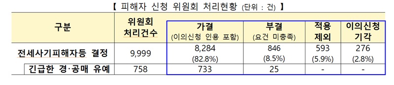 그동안 위원회에서 최종의결한 전세사기피해자등 가결 건은 모두 8248(누계)건이다. 긴급 경·공매 유예 협조요청 가결 건은 733건(누계)이다.