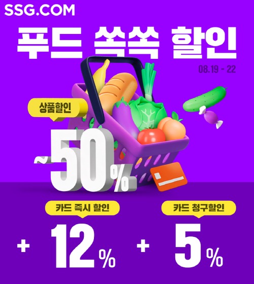 먼저, 오는 22일까지 ‘푸드 쏙쏙 세일’을 열고 쓱닷컴이 선정한 10대 장보기 카테고리 인기 상품을 최대 반값 수준에 선보인다.