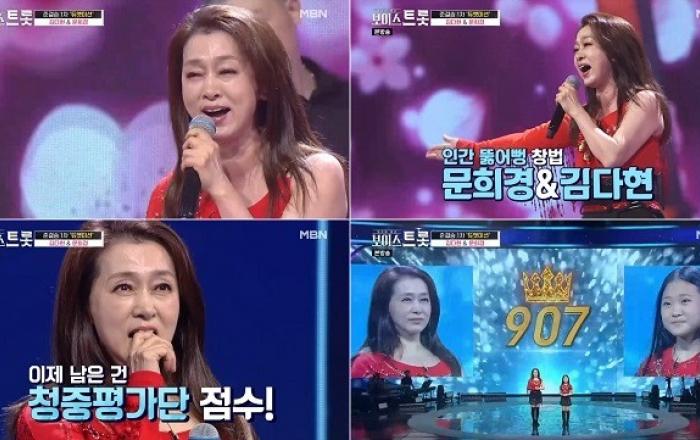 승리의 여신은 문희경의 손을 들어주었다.11일 방송된 MBN ‘보이스트롯’에서 준결승으로 향하는 와일드카드 주인공이 공개됐다. 와일드카드를 거머쥔 행운의 여신은 문희경이었다.지난 4일 방송된 MBN ‘보이스트롯’ 4라운드 대결에서 홍경민이 문희경을 선택했고 막상막하였던