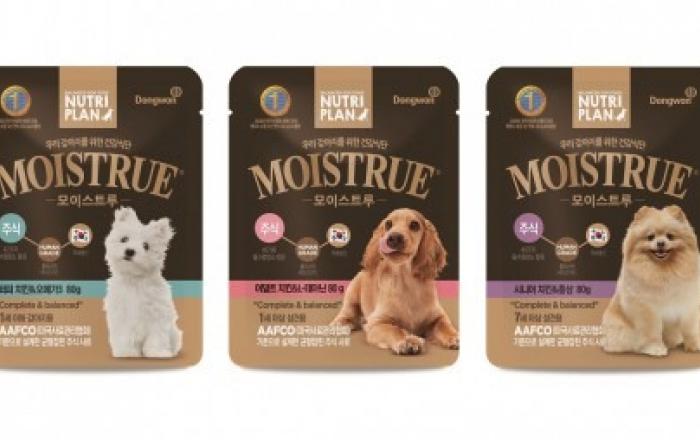 동원F&B의 펫푸드 브랜드 뉴트리플랜이 AAFCO의 기준으로 설계한 반려견용 주식 습식사료 ‘뉴트리플랜 모이스트루 주식’ 3종(퍼피, 어덜트, 시니어)을 출시하고 반려견 습식시장에 진출했다.▲ 반려견용 주식 습식사료 뉴트리플랜 모이스트루 주식 3종을 출시AAFCO(미국