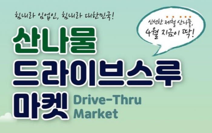 4월 27일(월)부터 29일(수)까지 대전광역시청 앞 보라매공원 공영주차장(대전지방경찰청 방면)에서 산나물 승차 구매(드라이브스루, Drive-thru) 시장을 운영한다.4월에서 5월 주로 생산되는 제철 산나물은 대부분 지역축제를 통하여 판매가 이루어진다. 그러나 코로