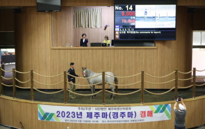 천연기념물이자 이색 경마로 유명한 '제주마'의 올해 첫 경매가 지난 13일 한국경주마생산자협회 경매장에서 열린 가운데 14번 상장마가 역대 최고가인 9,500만 원에 낙찰돼 화제다. 지난 13일, 한국마사회(회장 정기환) 제주목장에 위치한 한국경주마생산자협회 경매