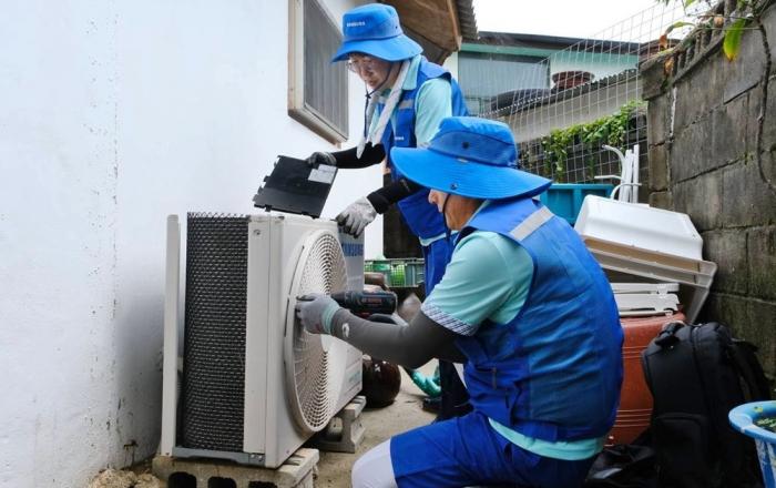 행정안전부가 제6호 태풍 ‘카눈’으로 침수 피해를 입은 지역에 가전제품 무상수리를 위한 ‘가전 3사 합동수리팀’을 14일 오전9시부터 운영한다고 밝혔다. 참여 업체는 삼성(☎ 1588-3366), LG 전자(☎ 1544-7777), 위니아(☎ 1588-9588)로, 다