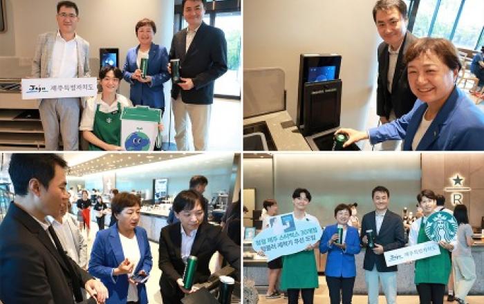 스타벅스 코리아가 ‘더제주송당파크R점’을 시작으로 제주 매장에 텀블러 세척기를 도입하며, 2026년까지 텀블러 세척기 전사 확대를 위한 본격적인 첫걸음을 뗀다.이를 위해 지난 26일 스타벅스 코리아 홍성욱 점포개발담당과 제주특별자치도 강애숙 기후환경국장은 스타벅스 파트