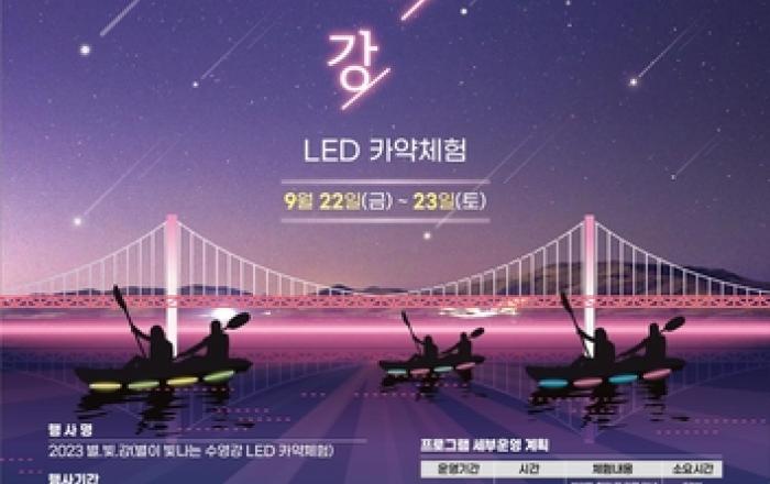 부산시와 부산관광공사는 오늘 9월 22일부터 10월 14일까지 2023년 하반기 해양레포츠 프로그램을 운영한다고 11일 밝혔다. 부산의 해양레저관광 가을에도 계속된다! 해양 시즌을 알리는 이번 프로그램은 별·빛·강 야간 LED 카약체험 프로그램 시작으로 부산의 해