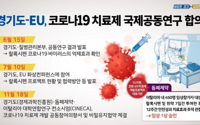 경기도와 유럽연합 지원 연구기관이 코로나19 바이러스 억제에 효과가 있는 것으로 확인된 골다공증 치료제 ‘랄록시펜’을 활용한 코로나19 치료제 개발을 위해 공동연구를 추진하기로 합의했다.18일 경기도에 따르면 도와 경기도경제과학진흥원(이하 경과원)은 유럽연합(EU)이