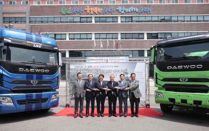 인천 서구는 한국가스공사, 수도권매립지관리공사, 유진초저온, 타타대우상용차, 한국천연가스수소차량협회와 청소차 및 믹서트럭의 액화천연가스(LNG) 차량 개발 및 보급에 협력하기로 하고 19일 서구청에서 '수도권매립지 쓰레기 운반차 등 친환경 LNG 차량 도입 시범사업'