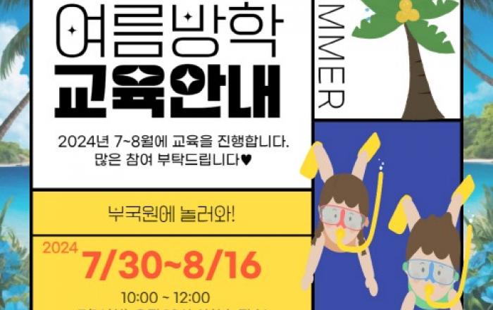 수원시가 근대문화공간 수원 구 부국원에서 열리는 ‘2024년 여름방학 교육 프로그램’의 참여자를 모집한다. 여름방학 교육 프로그램은 7월 30일부터 8월 16일까지 유아(7세), 어린이(초등학교 1~6학년), 가족을 대상으로 진행된다. 한국사와 공예, 환경 등을 주제로
