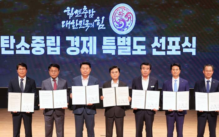 현대엔지니어링이 탄소중립경제 실현을 위한 수소도시 조성에 나선다.현대엔지니어링은 6일 충청남도가 주관하는 '탄소중립 경제 특별도 선포식'에 참석해 당진시 수소도시 조성사업을 위한 수소 공급 시설 구축·운영 등에 대한 업무협약을 맺었다고 밝혔다.이날 충청남도청문예회관에서