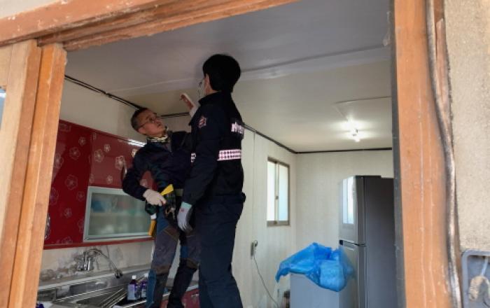 무안군 운남면 복지기동대는 지난 7일 주거환경이 열악한 독거노인 가구를 대상으로 주거환경개선을 시행했다. 이날 복지대원들은 최근 동파로 인해 수도관이 터져 장판과 벽지가 뜨고 집안 곳곳에 곰팡이가 피어 주거환경이 열악한 독거노인 가구를 위해 도배와 장판을 교체하고