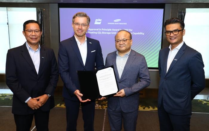 삼성중공업은 말레이시아 현지시간 30일 쿠알라룸푸르에서 노르웨이 선급인 DNV로부터 '부유식 이산화탄소 저장·주입 설비(FCSU, Floating CO 2 Storage Unit)'에 대한 기본 인증을 받았다고 밝혔다. 삼성중공업이 글로벌 해