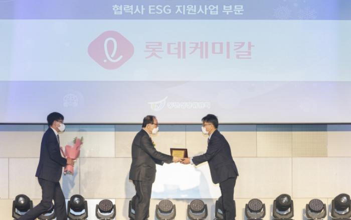 롯데케미칼이 동반성장위원회가 주최한 2022년도 대한민국 동반성장 대상에서 파트너사의 ESG 지표 개발 및 문화 확산에 기여한 공을 인정받아 ‘ESG 지원사업’ 분야 대상을 수상했다.대한민국 동반성장 대상은 동반성장에 기여한 단체를 포상해 동반성장 의식 고취 및 문화