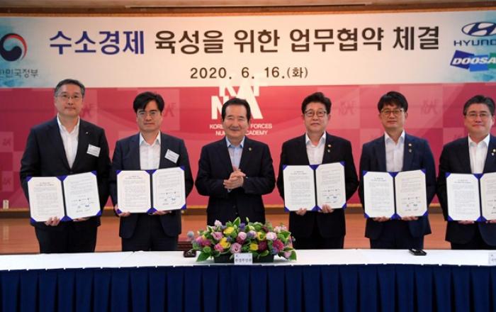 현대자동차㈜가 국방부·산업부·환경부·두산모빌리티이노베이션㈜과 함께 국군 내 수소전기차 도입 및 수소충전소 구축을 위해 협력한다.현대자동차는 16일(화) 자운대(대전시 유성구 소재)에서 정세균 국무총리, 환경부 조명래 장관, 국방부 박재민 차관, 산업통상자원부 정승일 차