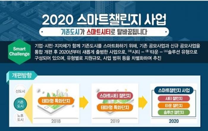 국토교통부는 2020년 「스마트 챌린지」 공모결과, 총 80건을 접수하여 전문가 평가를 통해 18건의 과제를 지원 대상으로 선정하였다.「스마트 챌린지」는 기업과 시민, 지자체가 힘을 모아 기존 도시에 혁신적인 기술과 창의적인 아이디어를 적용해 교통·환경·안전 등 도시문