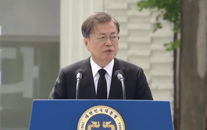 문재인 대통령은 25일 오후 8시 20분 국가보훈처 주최로 경기도 성남 서울공항 격납고에서 열린 6·25전쟁 제70주년 행사에 참석했다. 70년 만에 귀환하는 국군전사자 유해봉환과 함께 열린 이번 행사는 6·25전쟁 당시 국가를 지키려 헌신한 모든 이들에게 경의를