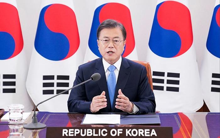 문재인 대통령은 18일 코로나19 백신과 치료제에 대해 “인류를 위한 공공재로서 전 세계에 공평하게 보급되어야 할 것”이라고 말했다.문 대통령은 이날 세계보건총회(WHA) 화상회의에서 ‘모두를 위한 자유’라는 제목의 초청연설을 통해 이같이 밝혔다.▲ 문재인 대통령이 1