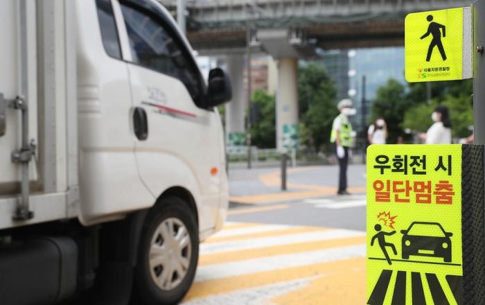 정부가 우회전 일시정지 정착을 위한 홍보·계도활동을 비롯해 우회전 신호등 설치도 계속해서 진행하는 등 하반기 교통약자와 취약분야 교통안전을 중점적으로 챙기기로 했다. 특히 드론을 활용해 고속도로상 법규위반 행위를 인공지능이 자동 선별해 신고하는 ‘AI 자동적발 시스템’