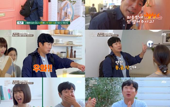 이수근이 '집방' 예능까지 완벽 섭렵했다.어제(14일) 첫 방송된 JTBC 새예능 ‘서울엔 우리집이 없다’는 잊고 있던 ‘집’의 본질을 되새겨 보고, 각자의 마음속에 간직한 드림하우스를 찾아 떠나는 프로그램이다. 첫 회부터 다양한 드림 하우스들이 공개된 가운데, 이수근