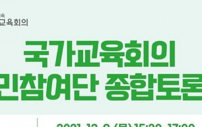대통령직속 국가교육회의는 오는 9일 ‘시민이 만드는 교육의 새로운 변화’를 주제로 2021 국민참여단 종합 토론회를 온라인으로 개최한다고 8일 밝혔다.이번 토론회는 지난 2년 동안 이뤄진 국가교육회의 국민참여단의 공론과 숙의 활동을 돌아보고, 미래교육을 위한 정책제안과
