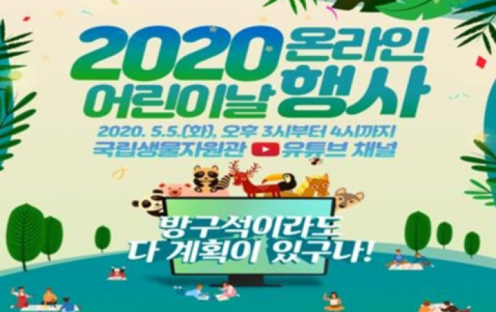 환경부 소속 국립생물자원관은 어린이날을 맞아 어린이와 가족들이 함께 즐기며, 생물의 소중함도 배우는 ‘2020 온라인 어린이날 행사’를 5월 5일 오후 3시부터 1시간 동안 국립생물자원관 동영상(유튜브) 채널에서 생방송으로 개최한다.국립생물자원관 동영상 채널은 유튜브(