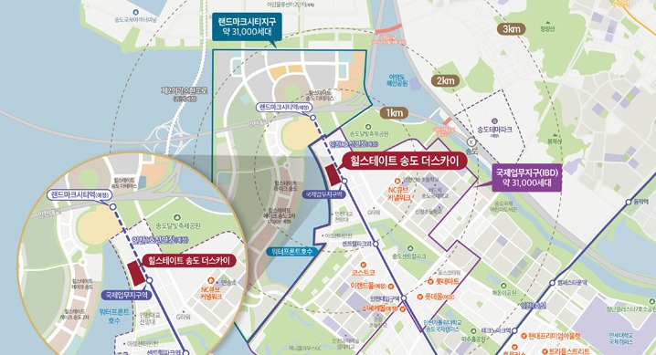 힐스테이트 송도 더스카이는 송도국제도시 내에서도 입지여건이 뛰어난 단지로 꼽힌다.