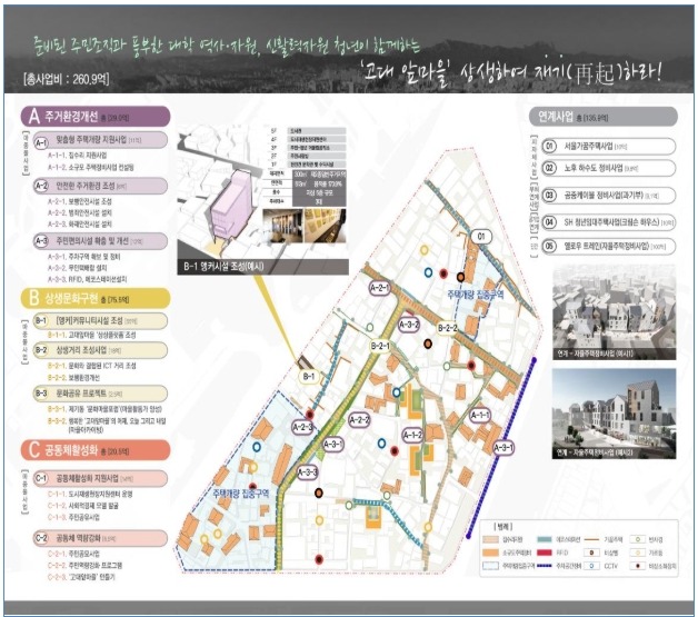 특히, 도시재생 뉴딜사업지역 내에서 자율주택정비사업을 함에 따라, 자율주택정비사업지 인근에 뉴딜사업비로 주차구역확보 사업, 무인택배함 설치, 골목길 개선 사업 등 생활SOC를 확충하고,