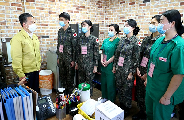박능후 코로나바이러스감염증-19 중앙재난안전대책본부 1차장(보건복지부 장관)은 4일 이곳을 방문해 병상 구축 진행 상황을 점검하면서 “심각한 국가 위기 상황에서 군 의무사령부와 공병단의 헌신적인 노력으로 당초 일정 보다 앞당겨 마무리할 수 있었다”고 격려했다.