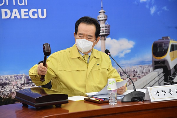 정 총리는 이날 대구시청에서 열린마스크와 마스크 필터용 부직포 관련 긴급수급조정조치안을 심의하기 위한 임시국무회의에서 이 같이 말했다.