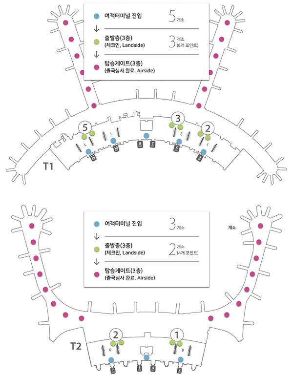 본격 운영에 앞서 이날부터 인천공항을 통해 출국하는 여객을 대상으로 터미널 진입(8곳), 3층 출발층(5곳), 탑승게이트 등 3번에 걸쳐 열화상카메라와 체온계를 이용한 발열검사를 실시한다.
