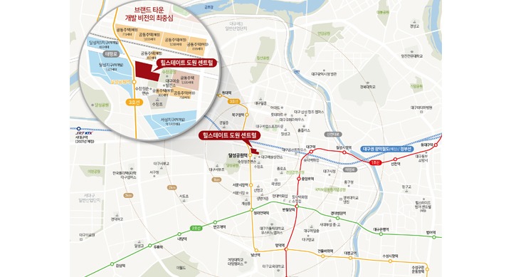 힐스테이트 도원 센트럴은 ‘힐스테이트 대구역’과 함께 힐스테이트 브랜드타운을 형성하는 것도 특징이다. 대구역 네거리와 달성공원역까지 중구 태평로 일대의 각 관문에 있는 두 단지는 브랜드파워 1위로 꼽히는 현대건설의 힐스테이트 브랜드 프리미엄으로 관심이 높은 상황이다.