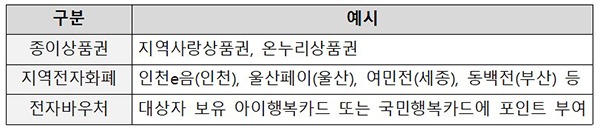 특히 코로나19로 위축된 지역 경제에 보탬이 되기 위해 지역사랑상품권과 온누리상품권, 지역전자화폐 전자바우처 등 지방자치단체별 여건에 맞는 방식으로 이뤄질 예정이다.
