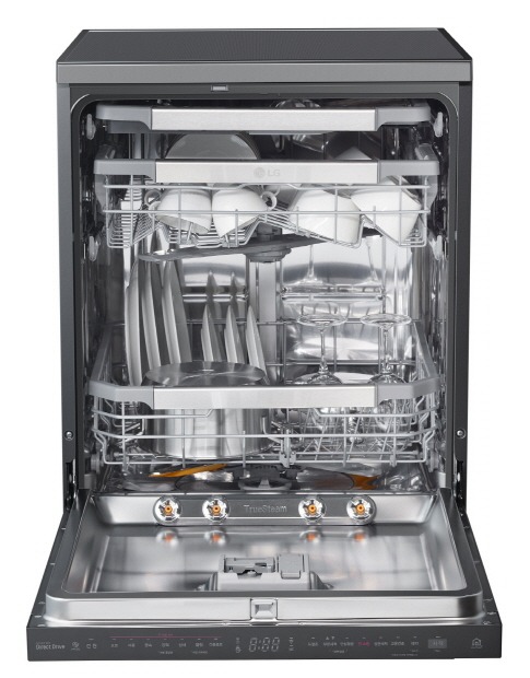 LG 디오스 식기세척기는 트루스팀을 탑재해 식기세척기의 천장, 정면, 바닥 등 3면에서 고온의 스팀을 빈틈없이 분사시켜 식기에 눌어붙은 음식물과 유해 세균과 바이러스를 깔끔하게 제거한다.