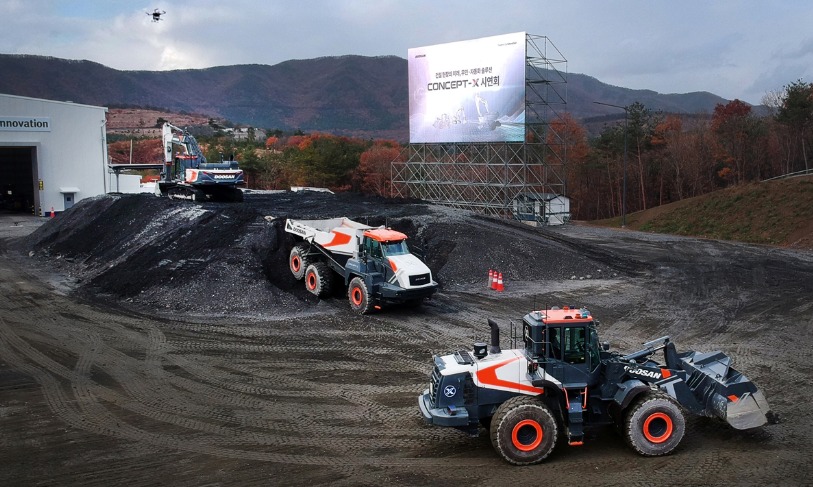 두산인프라코어는 지난해 11월 충남 보령 성능시험장에서 컨셉트-엑스 시연회를 열고 첨단 무인•자동화 기술이 집약된 미래 건설현장의 모습을 제시한 바 있다.