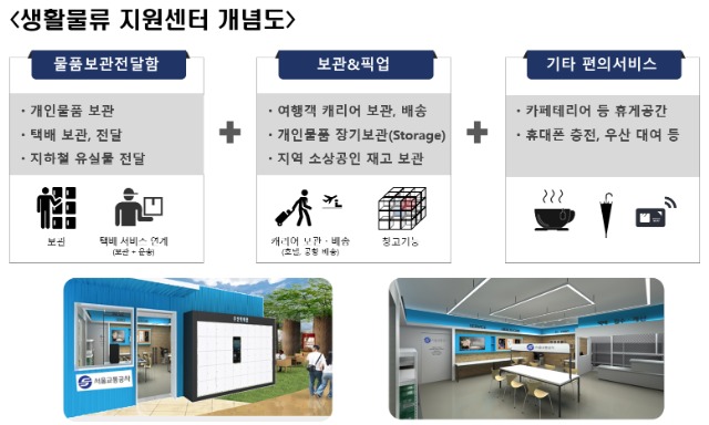 예를 들어 직장인이 많아 택배 서비스 수요가 많은 중심업무지구에 위치한 을지로입구역 등에는 택배 중심 지원센터를 설치하고, 문화・관광시설, 숙박시설이 많아 짐 보관 수요가 많은 관광지 인근 홍대입구역 등에는 유인보관소 및 물품대여 중심 지원센터를 설치하는 식이다.