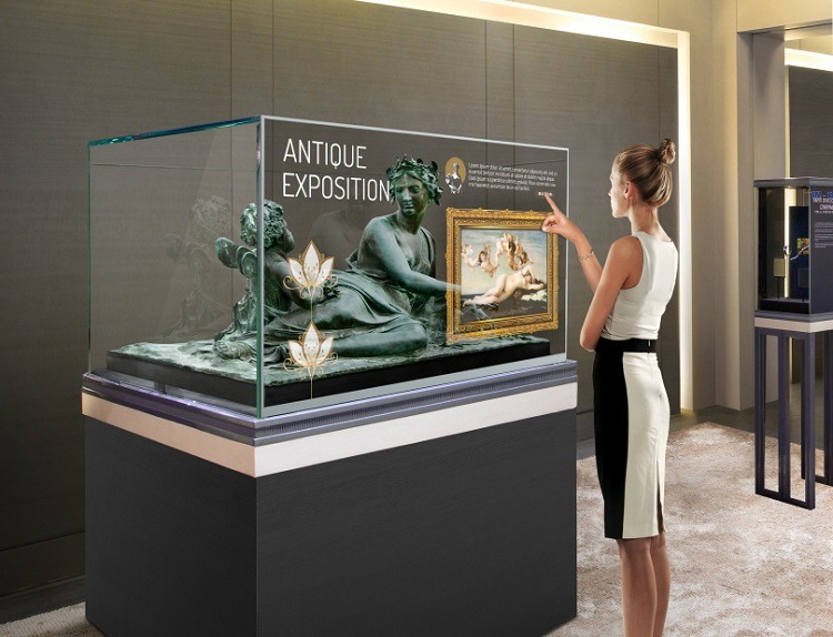 투명 올레드 터치는 최대 38%까지 빛을 투과해 화면과 화면 너머 모습을 동시에 보여준다. 고객과의 상호작용이 중요한 매장, 박물관, 공항 등에서 폭넓게 활용할 수 있다. 투명 디자인이라 여러 장을 이어 붙여도 이질감이 덜한 것도 장점이다.